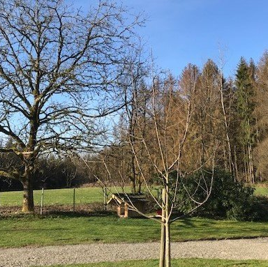 Unser Garten ist wie ein kleiner Park. Daher können wir Open-Air-Yoga mit Corona-sicherem Abstand von 5 m zwischen den Teilnehmern anbieten.